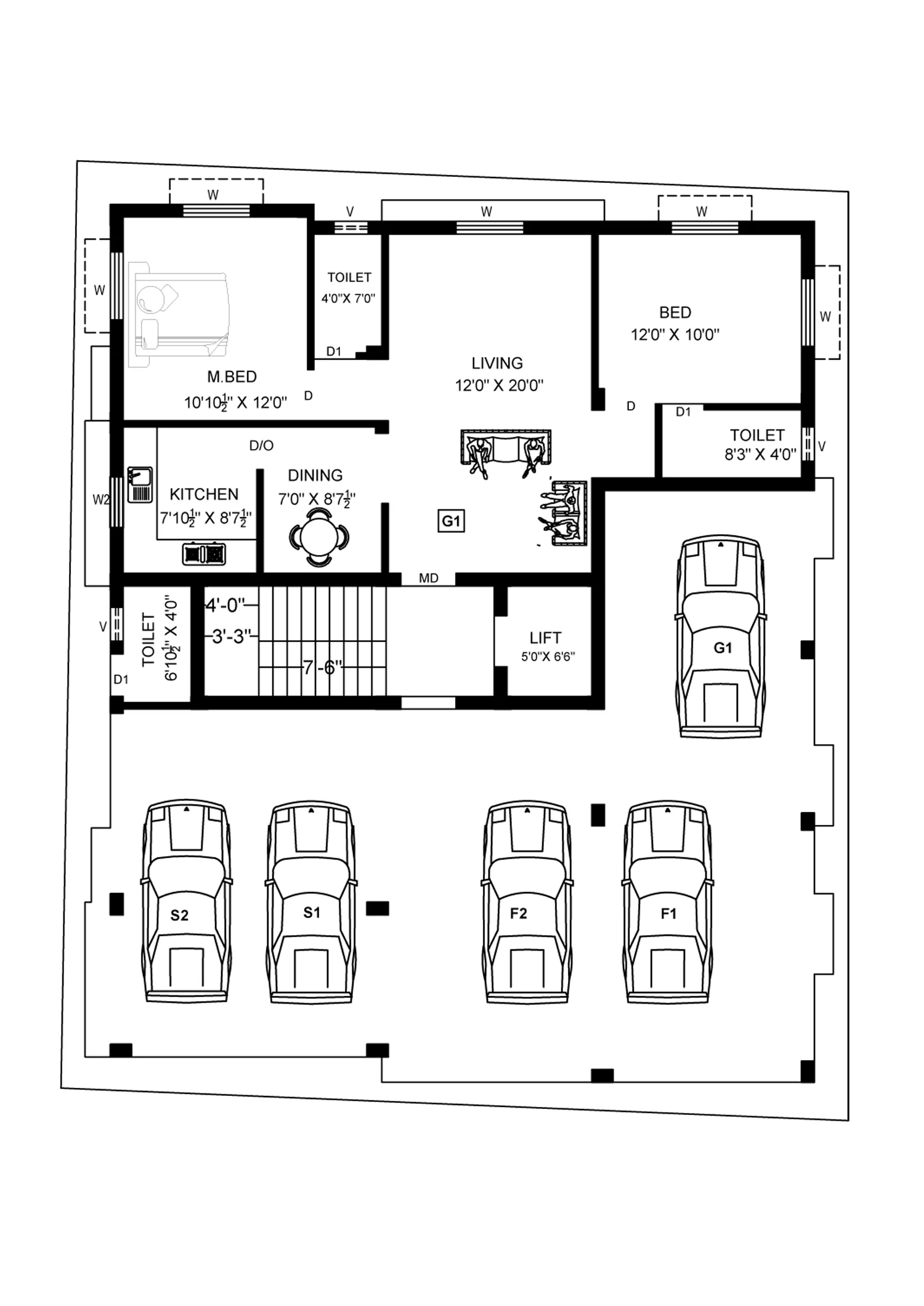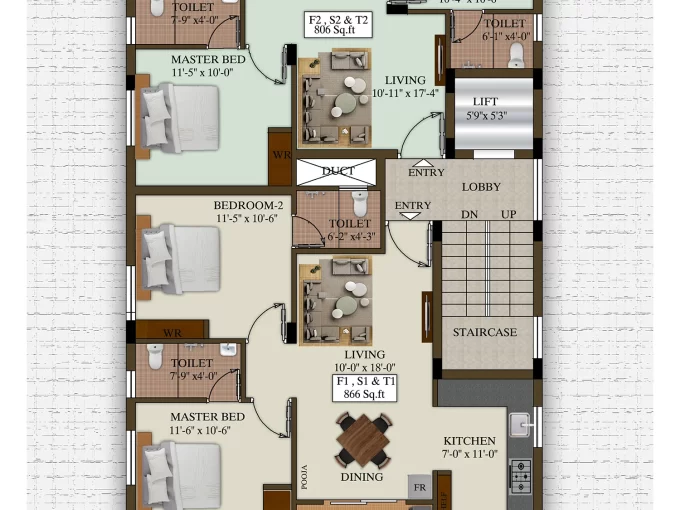 Spacious 2BHK Flats With Individual Car Parking, Lift is Available.
