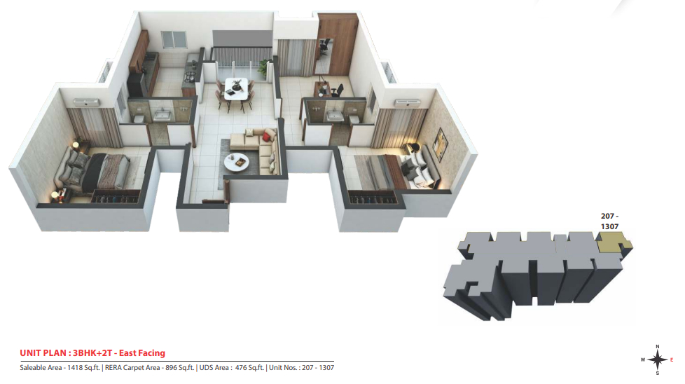 ✰ 3BHK + 2T: 1252 Sq.ft., 1409 Sq.ft., 1416 Sq.ft. and 1418 Sq.ft.