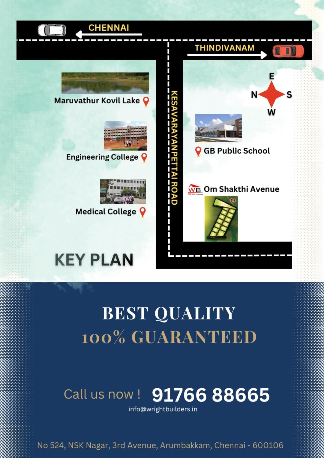 Spread over an area of 3 acres, Wright Om Sakthi Avenue is one of the spacious housing societies in the Chennai South region. With all the basic amenities available, Wright Om Sakthi Avenue fits into your budget and your lifestyle.