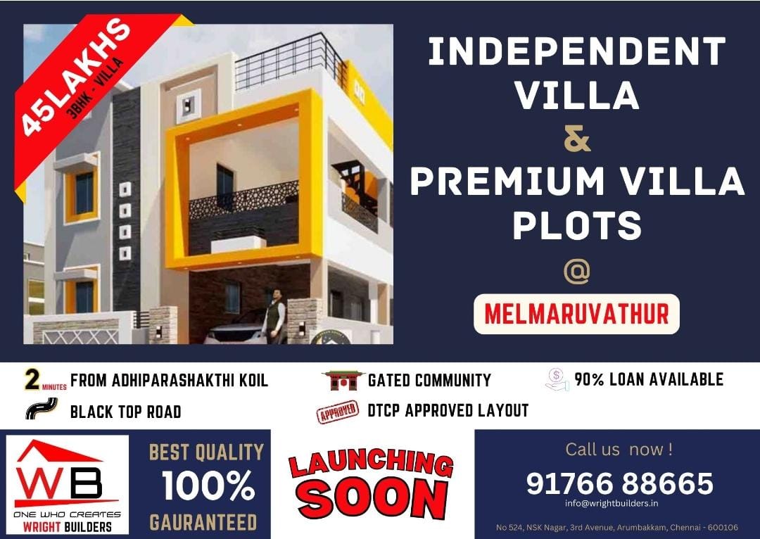 Wright Om Sakthi Avenue in Melmaruvathur, Chennai South is a ready-to-move housing society. It offers villas in varied budget range. These units are a perfect combination of comfort and style, specifically designed to suit your requirements and conveniences. There are 1BHK and 3BHK villas available in this project. This housing society is now ready to be called home as families have started moving in. Check out some of the features of Wright Om Sakthi Avenue housing society: