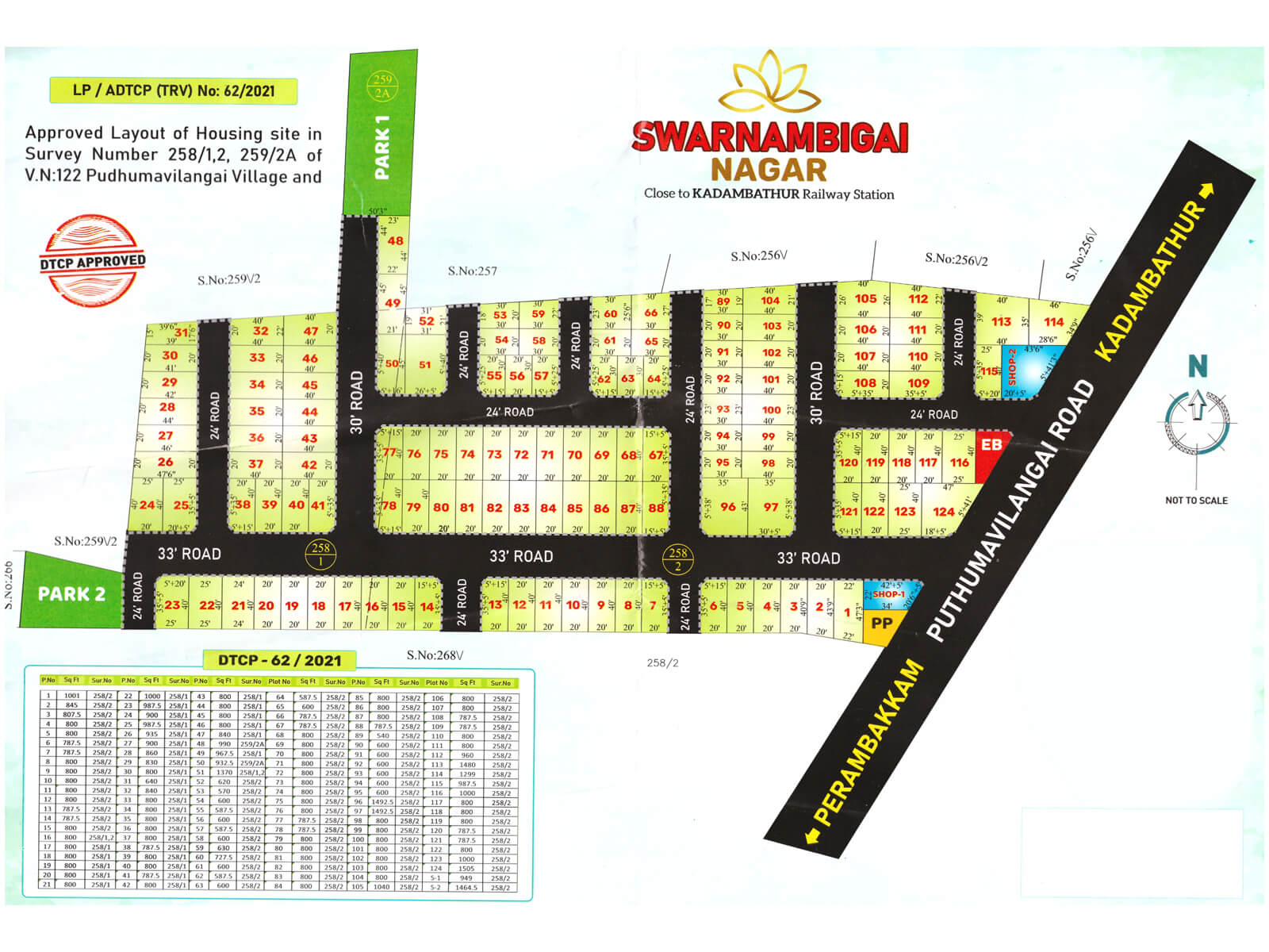 SWARNAMBIGAI NAGAR is located near district head quarters Thiruvallur and 50 kms from Chennai. SWARNAMBIGAI NAGAR has good transport connectivity through rail and bus. It is also strategically located between Chennai-Bangalore NH4 and Chennai-Tirupati NH 205. Hindustan Motors (Coterpillar), Chennai car plant (Mitsubishi), Delphi TVS and Hyundai Mobis lIndia are the companies located in and around Kadembathur. Proposed Greenfield airport is partially planned in Close to Kadambathur. There are many government offices in and around Our Project. It has good investment potential and several housing projects have come up in this locality.